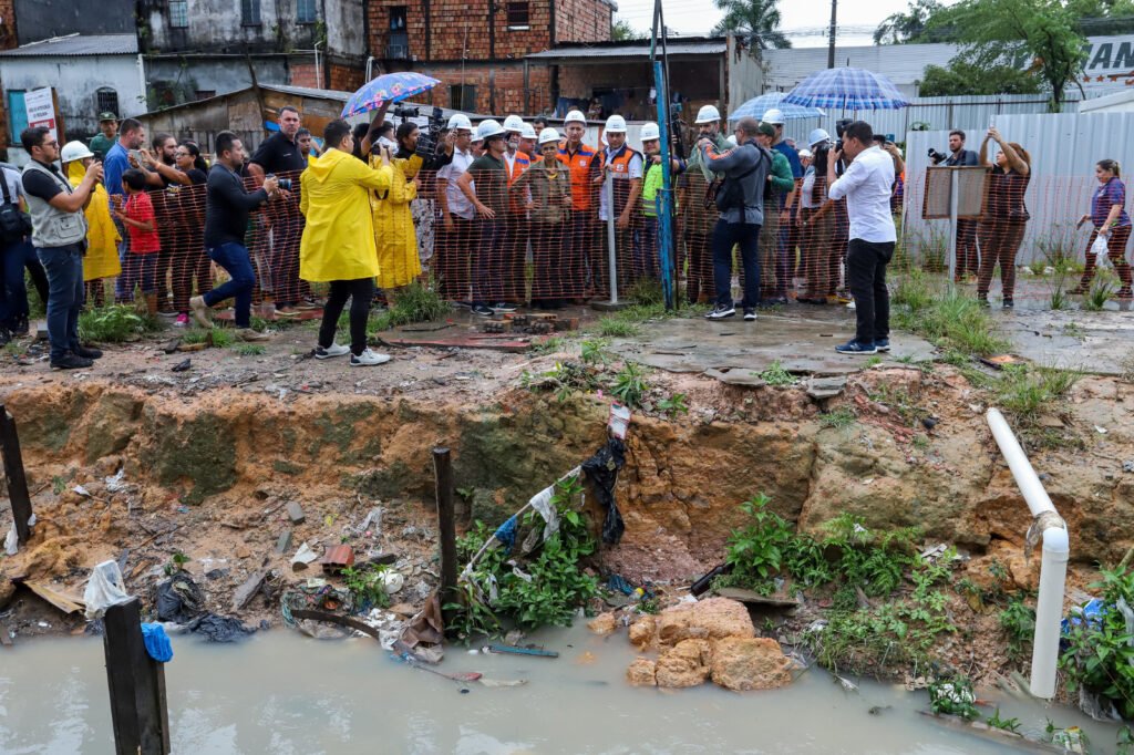 Formada por técnicos das Defesas Civis federal, estadual e municipal, a comitiva passou pela comunidade da Sharp, no bairro Armando Mendes, Zona Leste. A obra no local é de responsabilidade do Governo do Amazonas, que já anunciou a ampliação do Prosamim do Igarapé do 40.