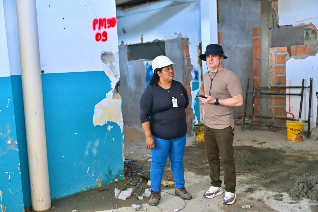O prefeito de Manaus, David Almeida, vistoriou, na manhã desta segunda-feira (6), as obras de reforma e ampliação da policlínica Djalma Batista, no bairro Compensa, zona Oeste da capital.