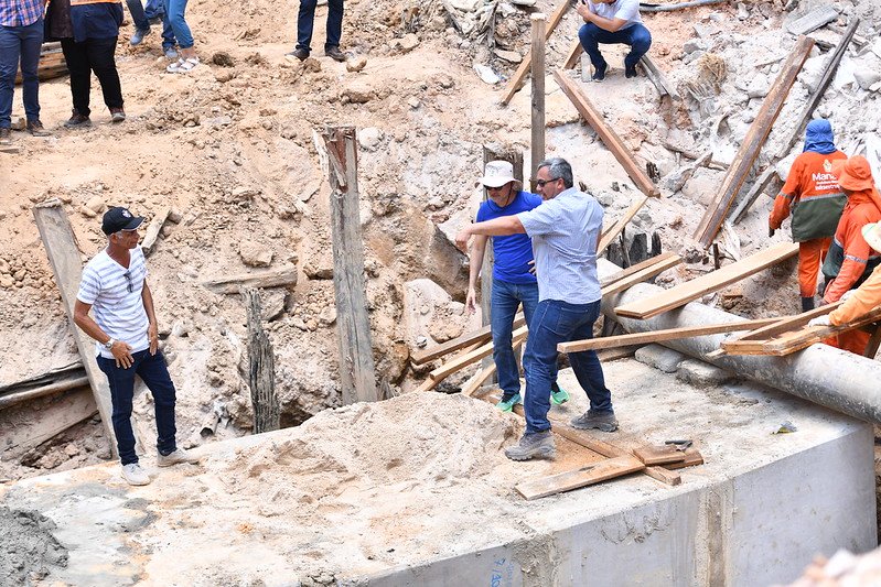 “Em abril se abriu esse buraco, uma obra como essa a gente gasta entre oito e dez dias úteis para poder resolver, nós precisamos esperar o rio baixar, secar, nós estamos só a dois dias trabalhando e os trabalhos já estão bem adiantados, fizemos a escavação, já colocamos as aduelas, daqui a pouco faremos o revestimento, mas quatro ou cinco dias úteis a gente entrega esse trecho da 7 de Setembro para trafegabilidade e também para os pedestres”, afirmou o prefeito.