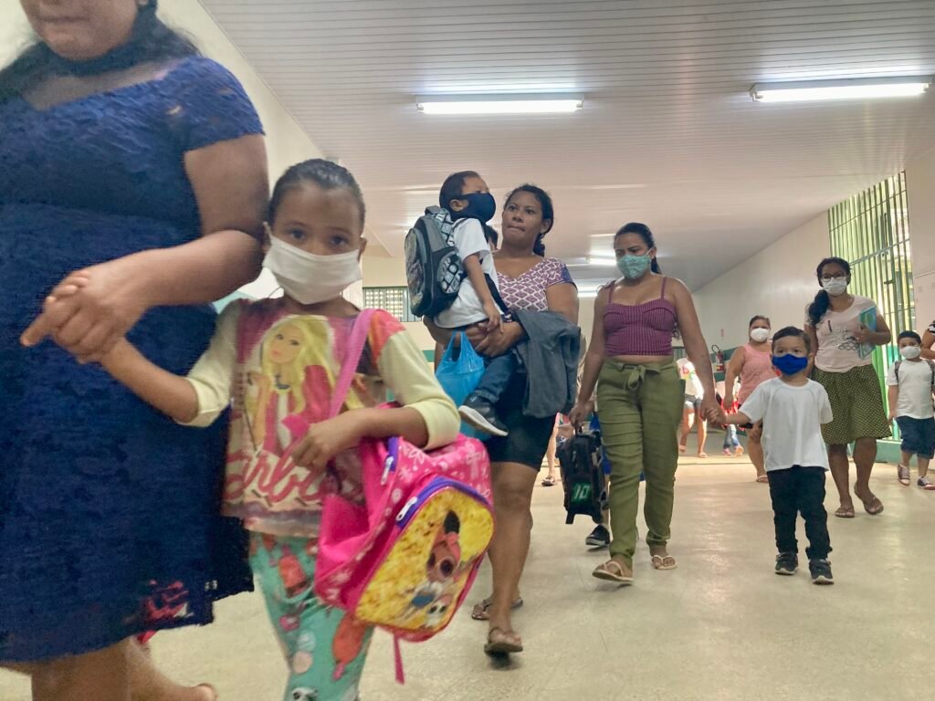 A dona de casa Lenice Dias Campos, mãe dos alunos Miguel Lorenzo Ribeiro, 4, e Lívia Manuela Ribeiro, 6, comemorou o início das aulas presenciais para os filhos que, segundo ela, receberão um melhor amparo no processo de aprendizagem com a nova estrutura.