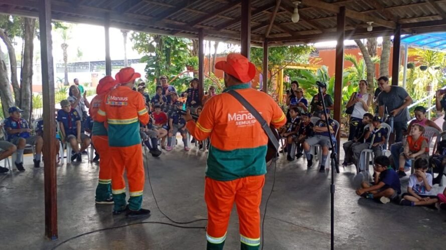 No último sábado (25), a sede sustentável da Semulsp, localizada no bairro Compensa, zona Oeste, recebeu a visita de cerca de 40 crianças, com idades entre 6 e 10 anos, integrantes de diferentes grupos de escoteiros de Manaus.