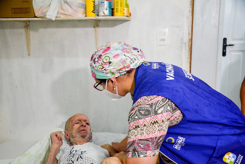 Agentes de saúde vão de casa em casa para vacinar idosos. Foto – Valdo Leão / Semcom