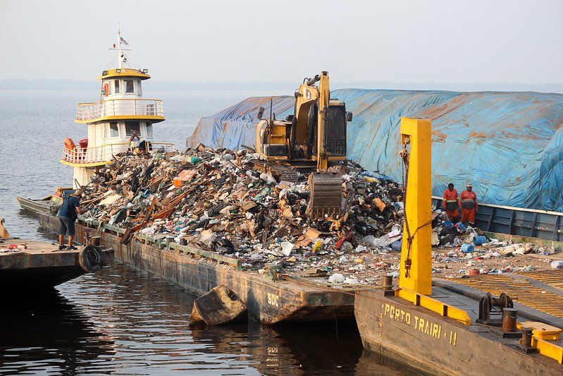 Os resíduos foram inicialmente transportados por balsas até o porto Trairí. Em seguida, o material foi transferido para caminhões, que seguiram pela rodovia AM–010 até o aterro sanitário municipal, onde receberam o tratamento adequado. Essa logística integrada de transporte fluvial e rodoviário foi essencial para garantir o descarte seguro e eficiente.
