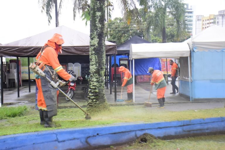 Nesta segunda-feira, 18, os servidores da pasta encontram-se espalhados em diversos pontos da cidade com a programação normal de trabalho em diversos serviços, como capinação, poda, lavagem, varrição e outros trabalhos.