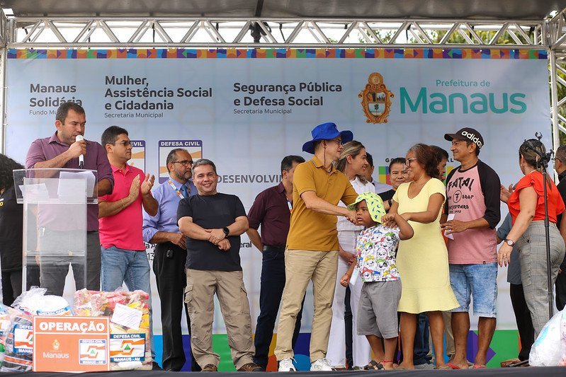 O prefeito de Manaus, David Almeida, entregou nesta sexta-feira (12), kits de assistência humanitária adquiridos com recurso federal, para as famílias afetadas pelas fortes chuvas do mês de março deste ano.