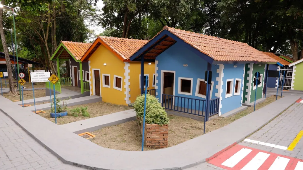 Atrativos – A área interna do Parque Cidade da Criança conta com diversos ambientes para diversão em família: balanços, tirolesa, escadaria para fotos, Cineminha, Fazendinha, mini vila com casinhas, chafariz, entre outros espaços.