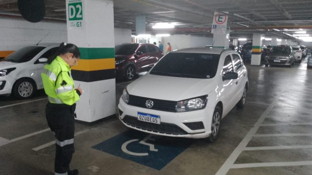 Ao final, 28 motoristas foram autuados porque estavam ocupando, indevidamente, os espaços reservados. A ação aconteceu no estacionamento do shopping Grande Circular, na avenida Autaz Mirim, nº 6.100, no São José Operário.