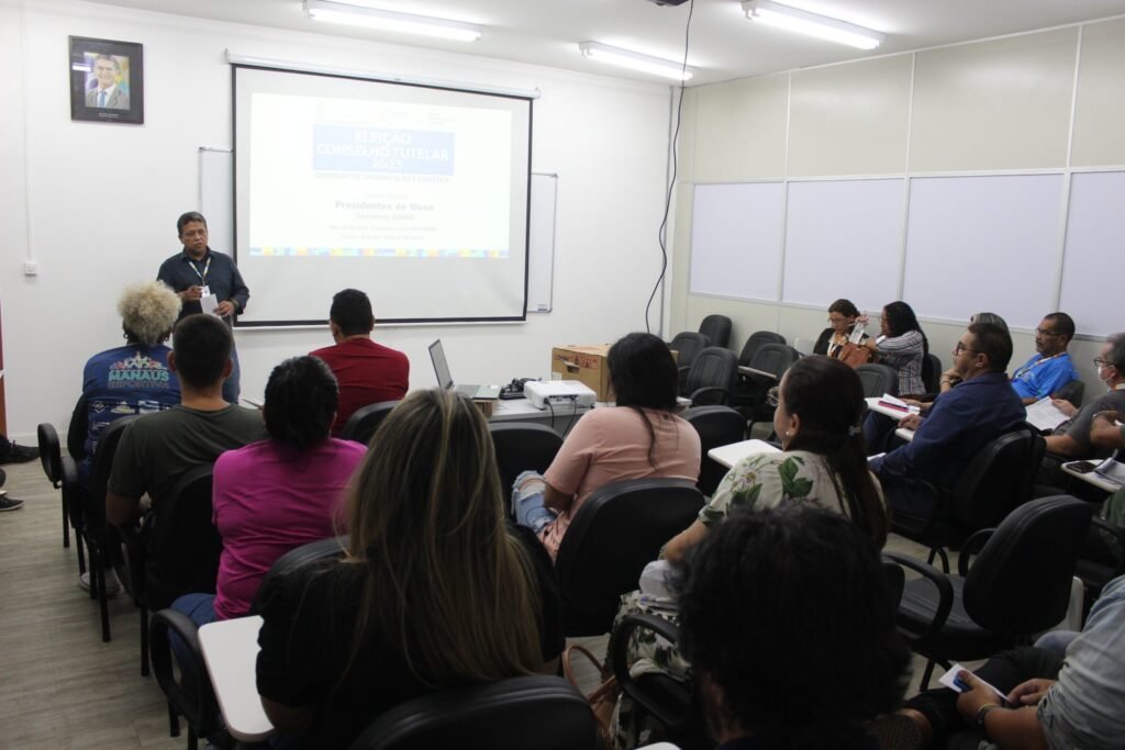 Dando continuidade aos preparativos para a eleição de conselheiros tutelares na capital amazonense, a Prefeitura de Manaus, por meio da Secretaria Municipal da Mulher, Assistência Social e Cidadania (Semasc), com apoio da Escola de Serviço Público Municipal e Inclusão Socioeducacional (Espi), realizou, nesta semana o primeiro dia de treinamento técnico para os servidores da Secretaria Municipal de Administração, Planejamento e Gestão (Semad) que atuarão como presidentes de mesa durante a votação.