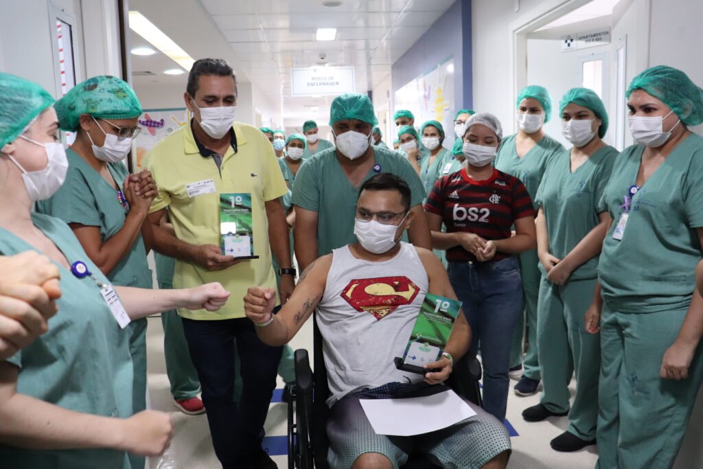 Na saída do ambulatório, a equipe assistencial do hospital, comandada pelo Instituto de Desenvolvimento Social e Humano (INDSH), preparou aos pacientes um corredor da vitória e anunciou pela primeira vez no sistema sonoro do hospital o código esmeralda, que significa alta de pacientes transplantados.
