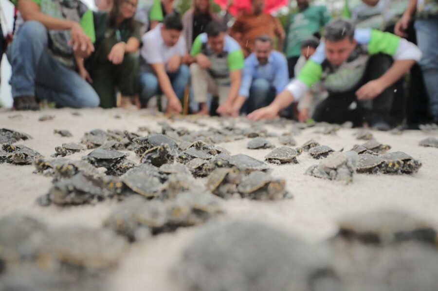 Nos 100 primeiros dias de gestão, a Sema também apoiou a soltura de mais de 102,3 mil filhotes de quelônios de volta à natureza. A ação faz parte do monitoramento das espécies nas UC, feito no intuito de garantir a proteção dos filhotes, evitar a caça ilegal de ovos e a assegurar a conservação dos ecossistemas onde esses animais estão inseridos.