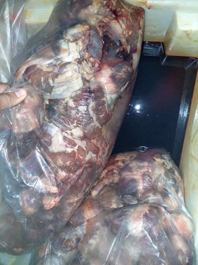 Os produtos estavam armazenados em um frigorífico e seriam usados para a produção de linguiça, combinados com ingredientes vencidos para disfarçar o aspecto deteriorado.