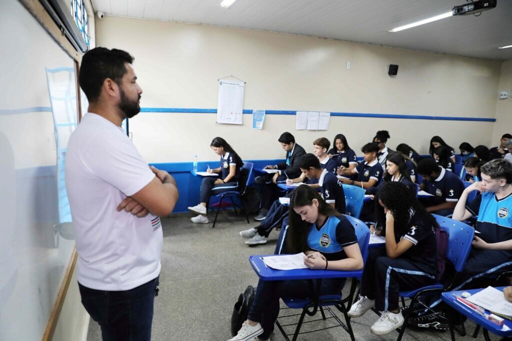 Fruto das ações desenvolvidas dentro de sala de aula, Ana Beatriz Begatti, 17, concluiu o ensino, em 2023, na Escola Estadual (EE) Homero de Miranda Leão, zona norte de Manaus, e foi aprovada em primeiro lugar para Química. Na unidade de ensino dela, o cuidado com o vestibular foi intenso. Desde mutirões voltados às inscrições, até simulados regulares, projetos de redação e “aulões” de Língua Portuguesa e Matemática.