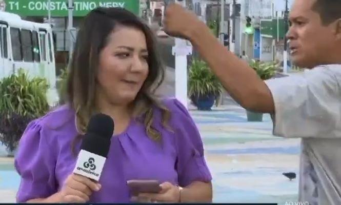 A repórter Naine Karvalho, da TV Amazonas, sofreu uma tentativa de agressão, de um homem, na manhã desta sexta-feira (12) durante transmissão ao vivo.