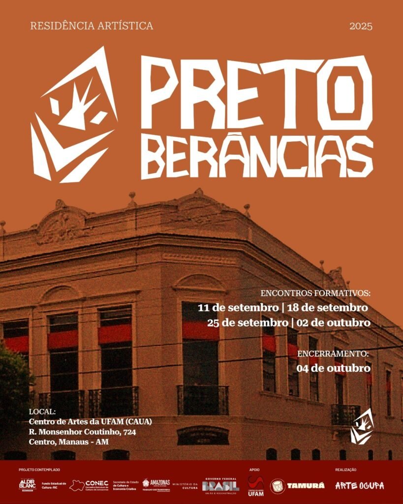 O Coletivo Arte Ocupa lança a chamada para a Residência Artística Pretoberâncias, iniciativa contemplada pelo Edital de Chamamento Público Nº 10/2024 – Fomento à Execução de Ações Culturais de Proponentes Negros, via Política Nacional Aldir Blanc de Fomento à Cultura e com o apoio do Governo do Amazonas, por meio da Secretaria de Estado de Cultura e Economia Criativa.