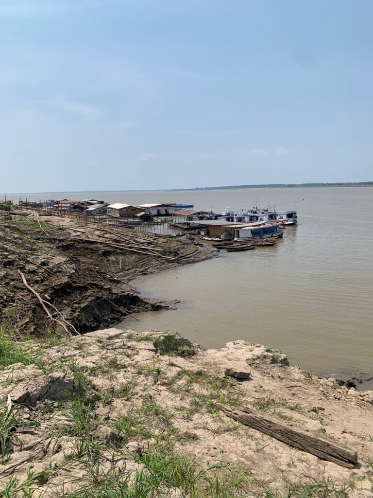 Uma praia tem se formado na orla da cidade onde antes era banhada pelo rio. Bancos de areia estão surgindo no meio do rio, forçando as embarcações a se afastarem e ficarem cada vez mais longe do local onde costumavam atracar, próximo à via pública.