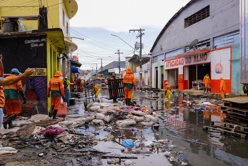 A limpeza vai ser realizada nas áreas atingidas pela água, que deixou mau cheiro e acúmulo de lixo deixado pela água parada.