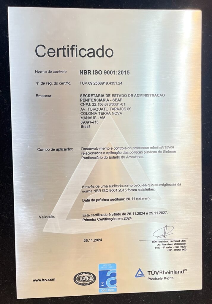 A certificação ISO 9001:2015 é mais do que um reconhecimento: é um compromisso contínuo com a excelência, eficiência e responsabilidade no serviço público. A Secretaria de Administração Penitenciária do Amazonas prova, mais uma vez, que é possível inovar e avançar, servindo como referência para todo o Brasil.