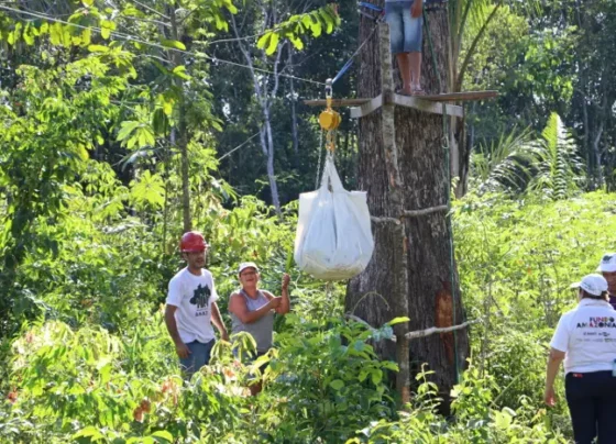 Cabos entre árvores promete reduzir até 80% do esforço físico no transporte de produtos amazônicos