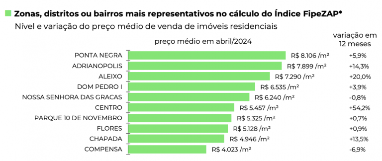 Os bairos Ponta Negra, Adrianopolis e Aleixo são os mais valorizados, conforme cálculo do Fipezap.