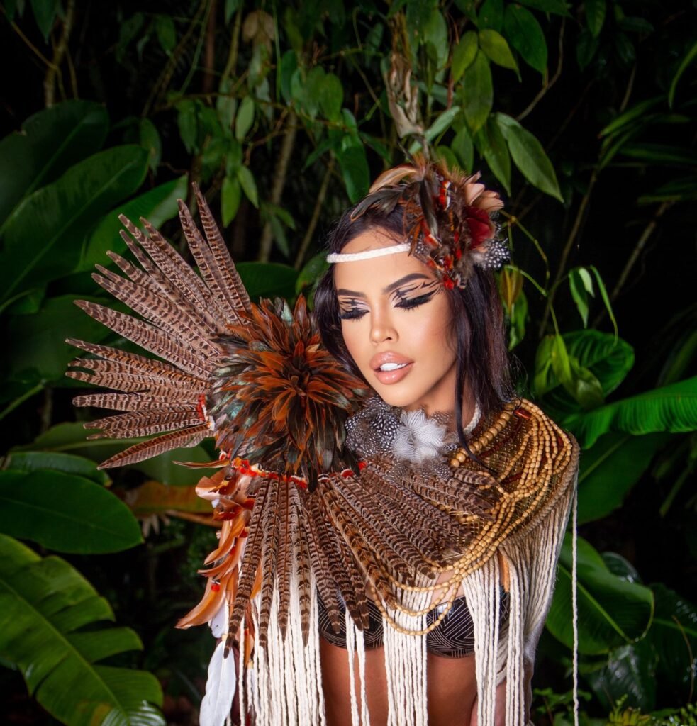 - Os grafismos indígenas também são uma boa pedida para quem vai para uma festa temática. Investir numa pintura artística e compor com um acessório, faz uma grande diferença.
