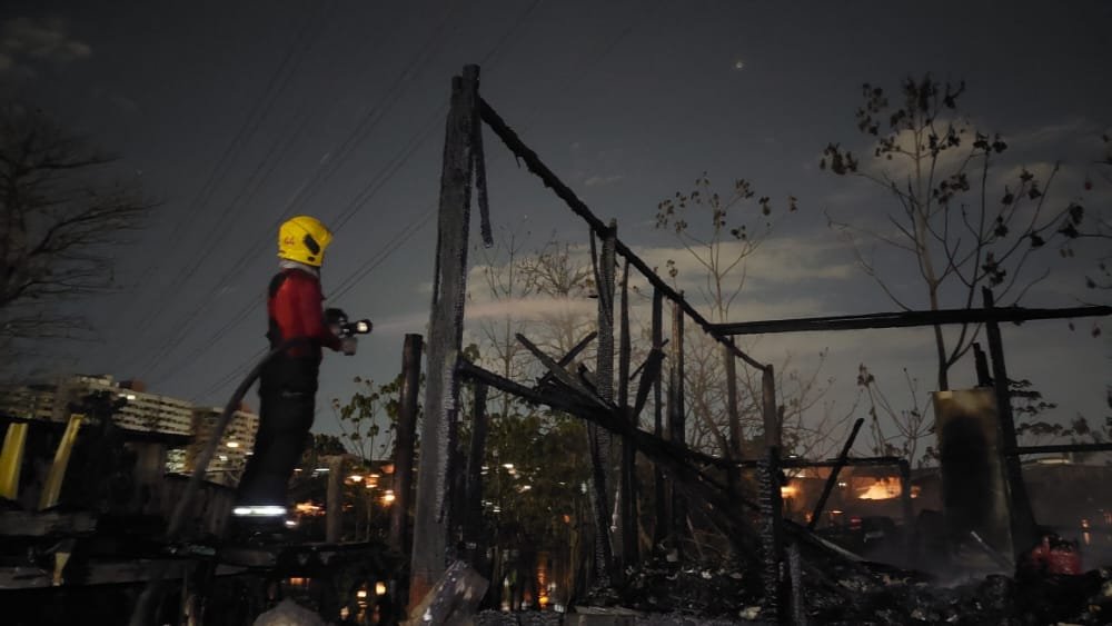 Ainda segundos os Bombeiros, as chamas consumiram as palafitas nas proximidades do Igarapé do São Jorgee alguns moradores chegaram a pular na água para escapar do fogo. 40 mil litros de água para controlar Cerca de 22 bombeiros atuaram na ocorrência.