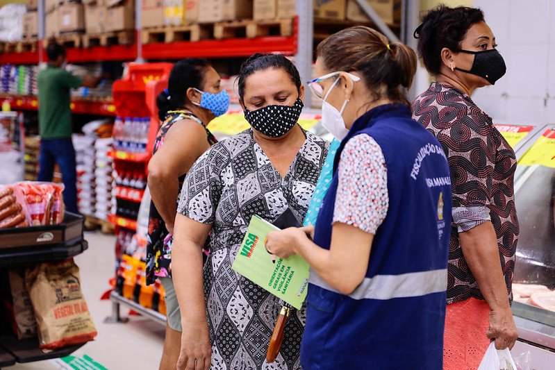 A Vigilância Sanitária da Prefeitura de Manaus (Visa Manaus) esteve no sábado (19) em cinco supermercados das avenidas Autaz Mirim e Cosme Ferreira, na Zona Leste da cidade, orientando os consumidores e trabalhadores sobre as condições sanitárias dos estabelecimentos .