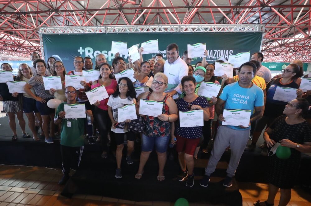 Ao entregar o certificado de reabilitação pós-Covid-19 para alguns pacientes do RespirAR, no Centro Estadual de Convivência da Família Padre Pedro Vignola, Wilson Lima também anunciou a ampliação do quadro de profissionais que atuam no programa.