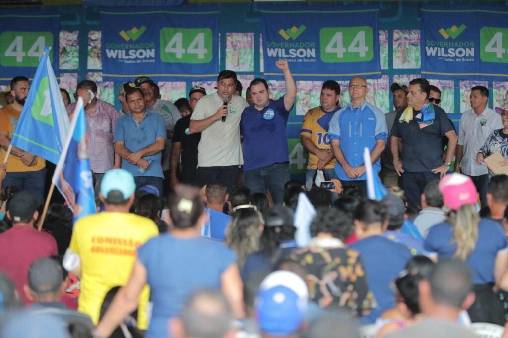 Depois de realizar carreata e caminhada, Wilson participou de comício ao lado do prefeito de Novo Aripuanã, Jocione Souza, e destacou que tem investido em melhorias na infraestrutura da cidade e da rodovia estadual AM-174.